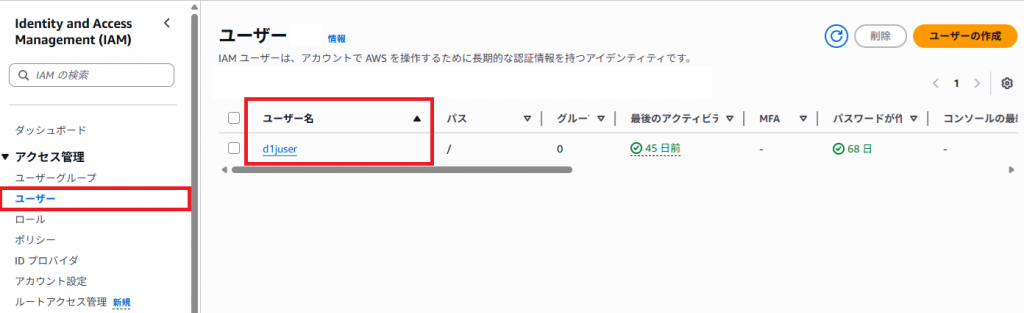 11. 「ユーザー」をクリックし対象の「ユーザー名」をクリックする。
