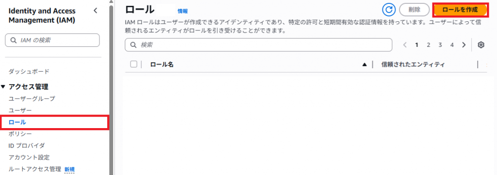 「ロール」をクリックし「ロールを作成」をクリックする。