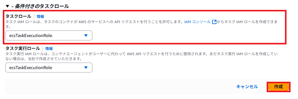 21. 「タスクロール」にロールを追加し「作成」をクリックする。