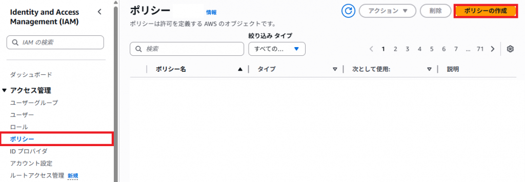 2. 「ポリシー」をクリックし「ポリシーの作成」をクリックする。