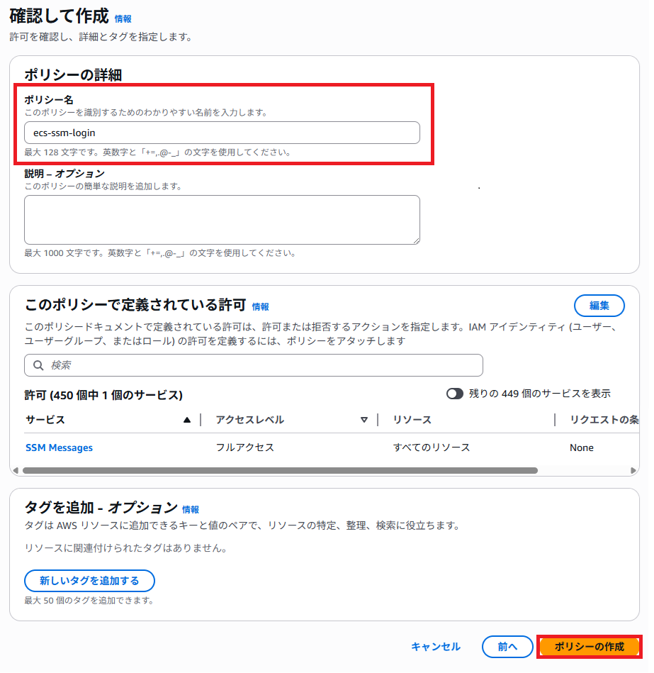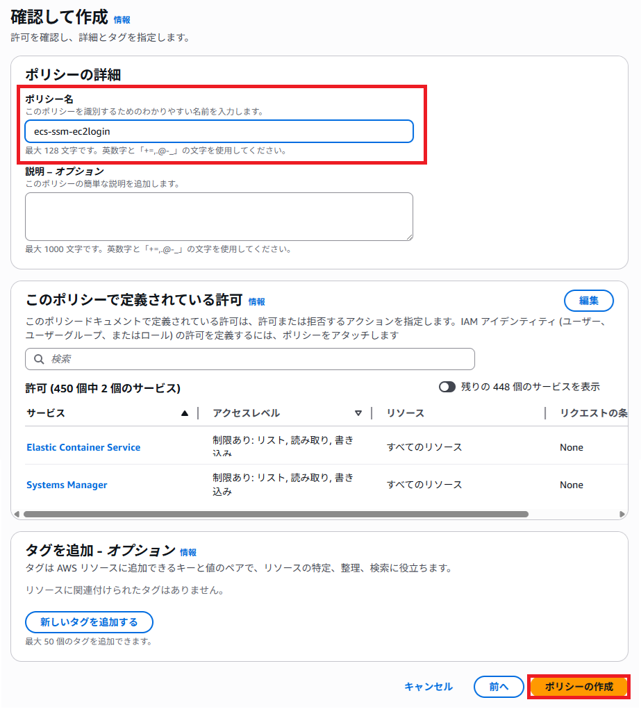 | 「ポリシーエディタ」に貼り付けてください。 こちらはECS用になります。 |