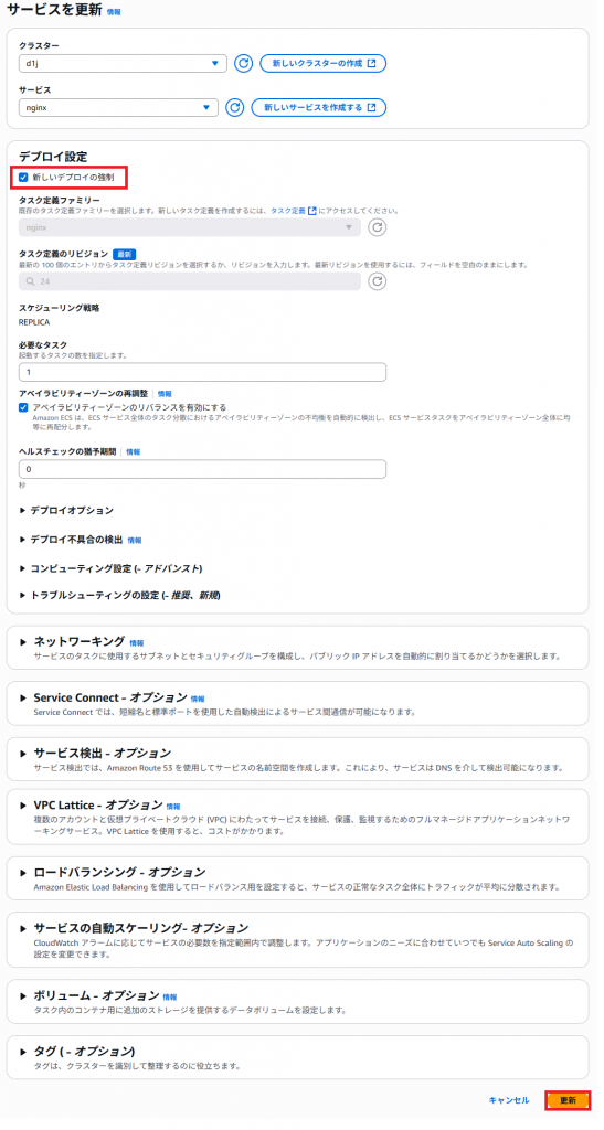 15. 「新しいデプロイの強制」にチェックマークを入れて「更新」をクリックする。
