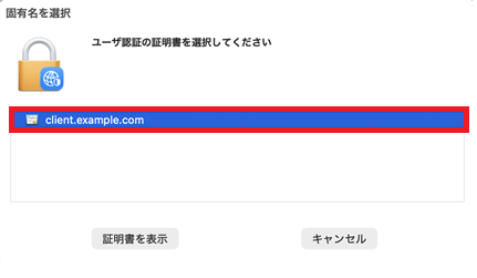 | ユーザー認証 | 「証明書」を選択してください。 |