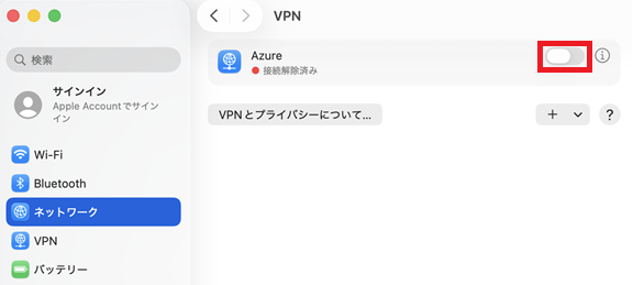 VPN Gateway(P2S)macOS設定方法(macOS Tahoe 26.0.1)