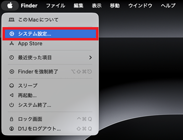 17. 左上の「りんごマーク」をクリックし「システム設定」をクリックする。