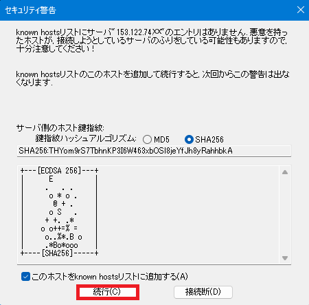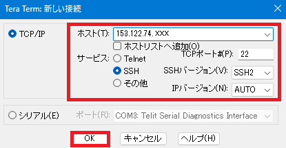 | SSHバージョン | 「SSH2」を選択してください。 |