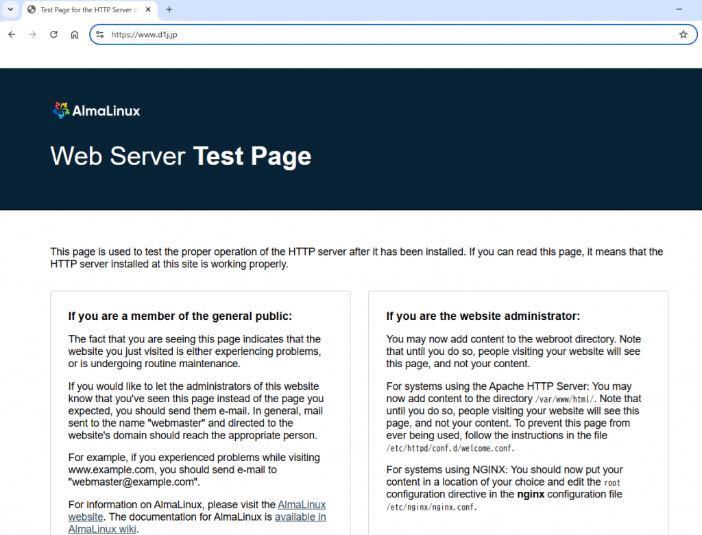 AlmaLinux9.6で今回は無料SSL証明書設定方法を記載いたします。
