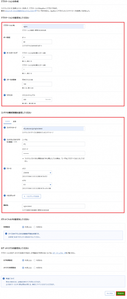 さくらのクラウド AppRun(CR版)アプリケーション設定方法(その2)