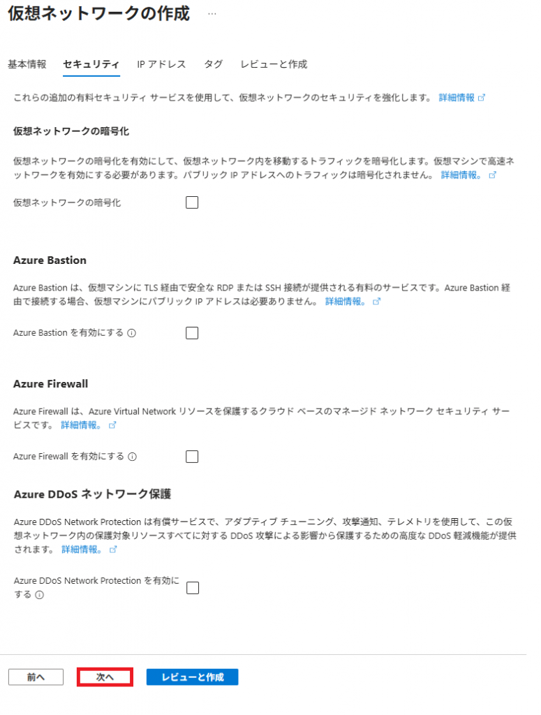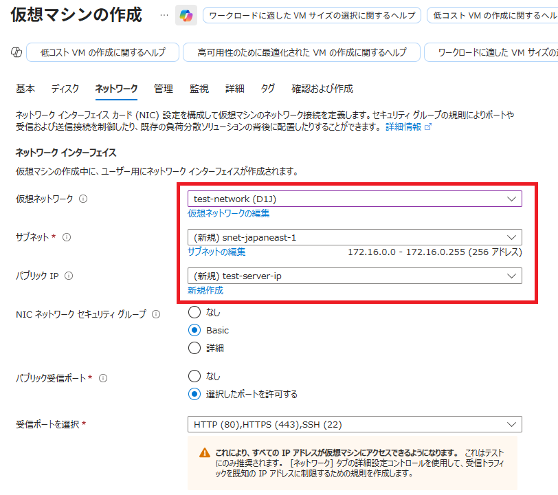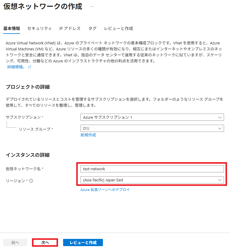 Azureは仮想マシン(サーバー)作成時に自動的に仮想ネットワークが作成されます。