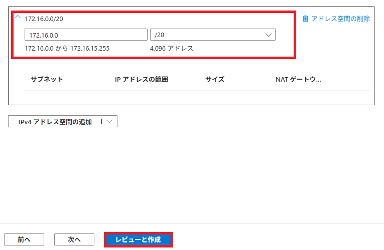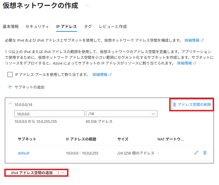仮想ネットワークを追加することでお好きなIPアドレスを利用することが可能です。