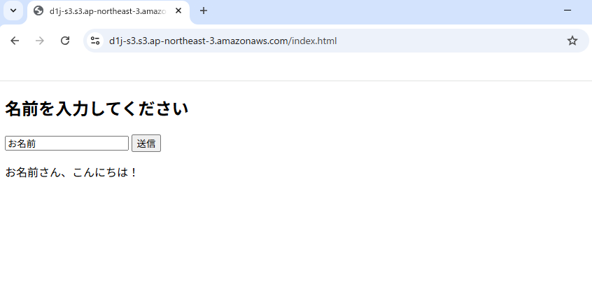 名前を入れてみましょう。〇〇さん、こんにちは!が表示できましたら成功です。
