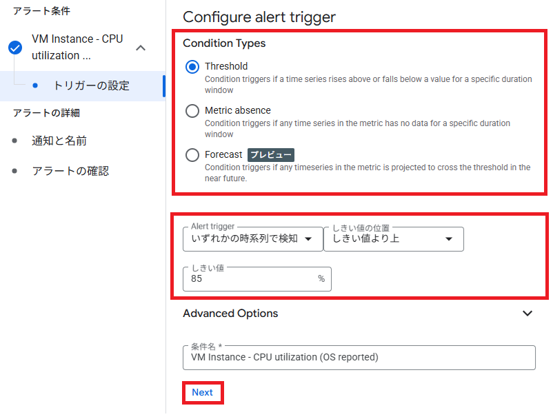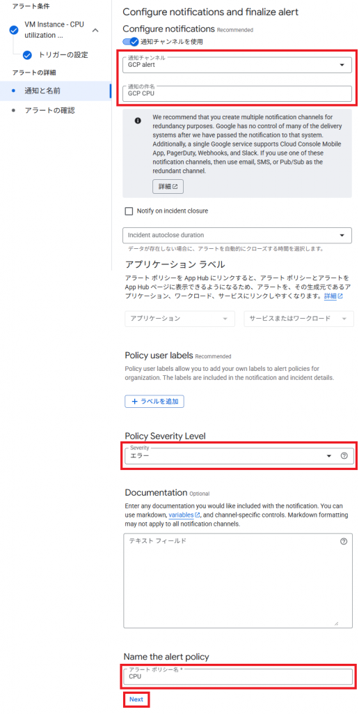 GCP(Google Cloud)Cloud Monitoring CPU使用率アラート設定方法(その3)