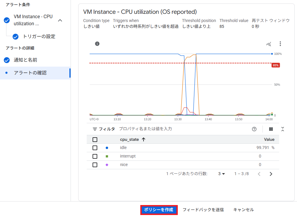 Cloud Monitoring CPU使用率アラート設定方法(その3)
