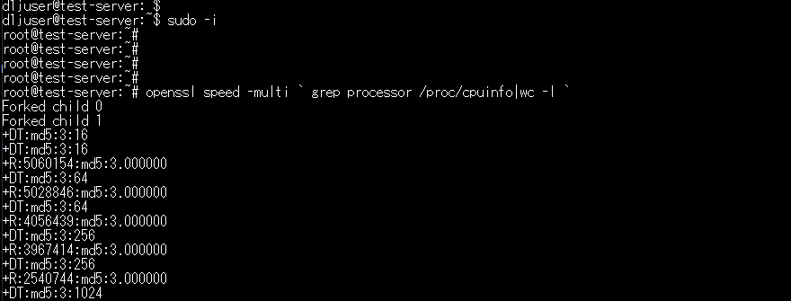 | # openssl speed -multi ` grep processor /proc/cpuinfo|wc -l ` | opensslコマンドでCPUの使用率を上げます。 |