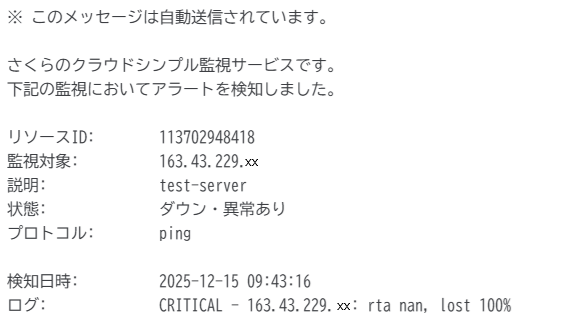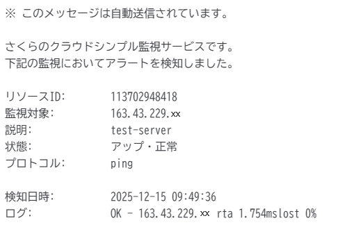 以上で「さくらのクラウド シンプル監視 ping監視設定方法」を完了いたします。