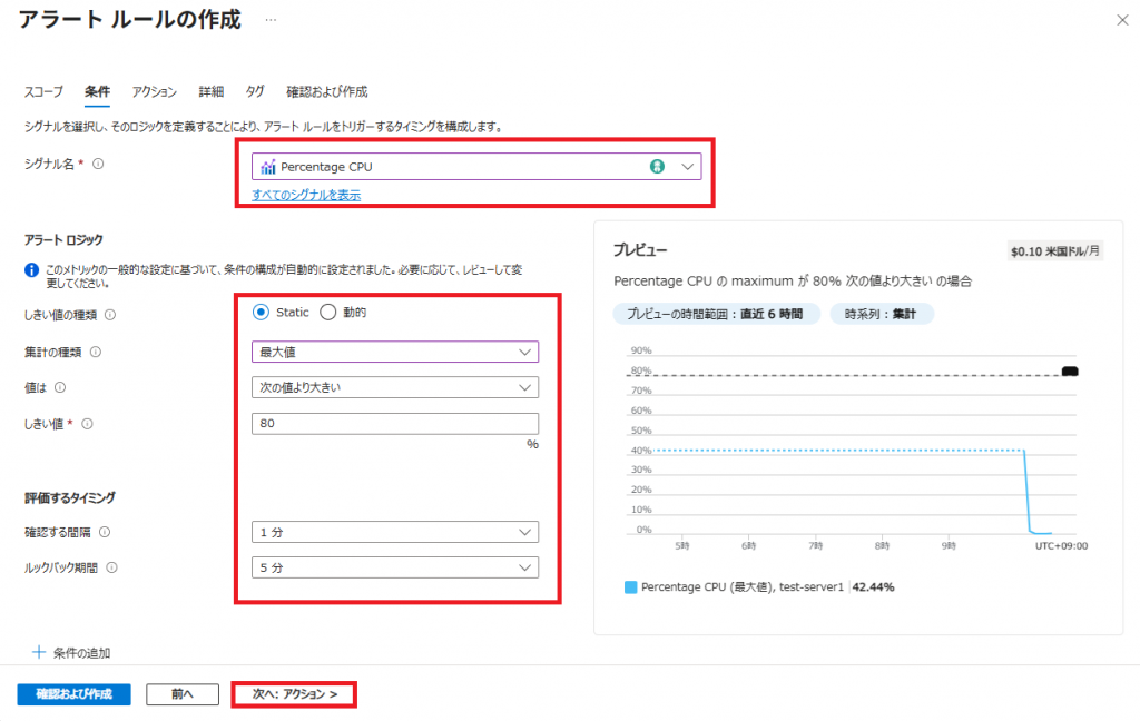 ※CPU使用率の監視は、「Microsoft Azure Monitor監視設定方法(その1)」の