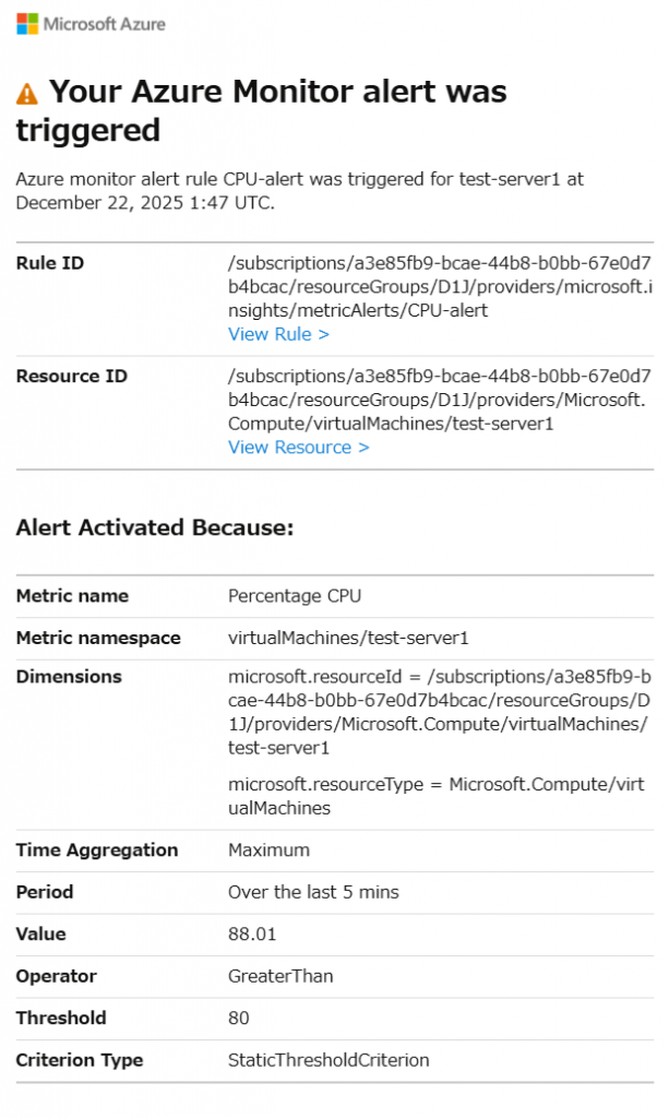 以上で「Microsoft Azure Monitor CPU監視設定方法(その2)」を完了いたしました。