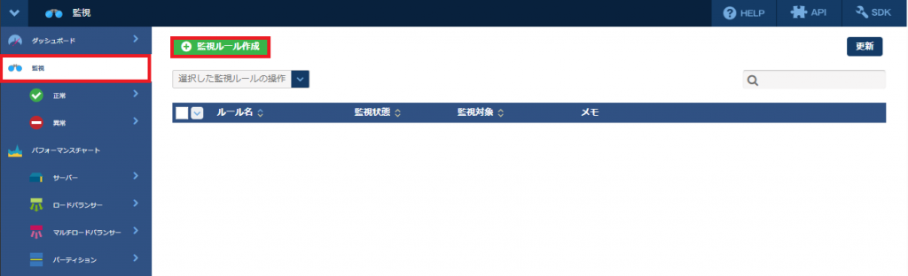 2. 「監視」をクリックし「監視ルール作成」をクリックする。