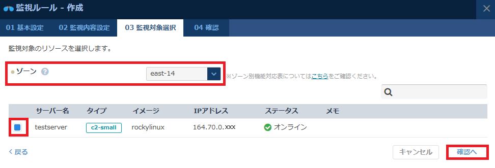 | ゾーン | 対象サーバーのゾーンを選択してください。 |