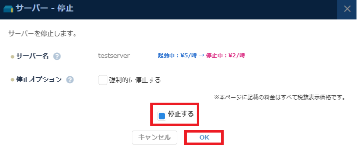7. 対象サーバーを停止いたします。