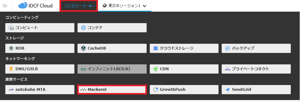 1. 「コンピュート」を選択し「Mackerel」をクリックする。