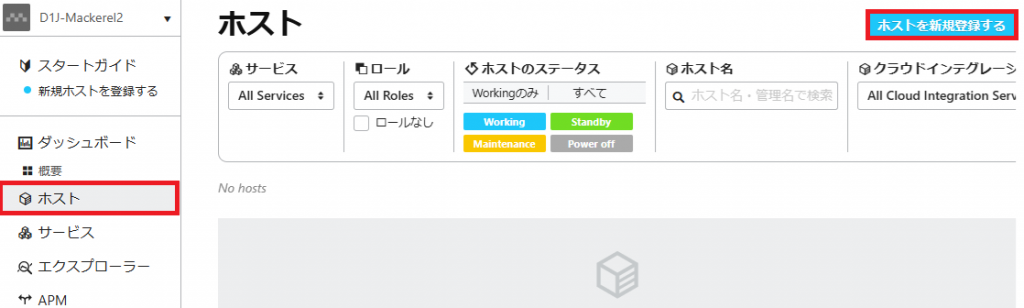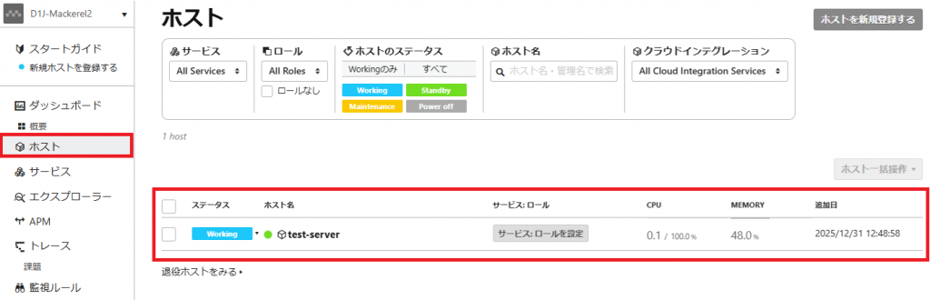 7. Mackerelの管理画面からホストが登録されたか確認いたします。