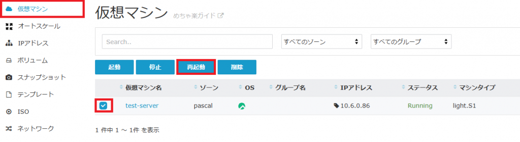 6. SSHDをダウンしたのでログインできないので、管理画面から対象サーバーを再起動いたします。