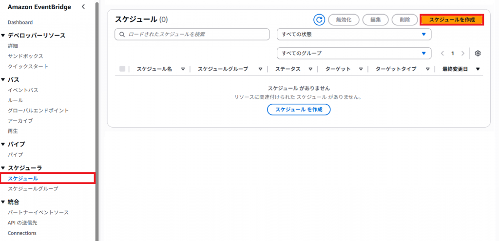 1. AWS マネジメントコンソールの 「すべてのサービスを表示」から「Amazon EventBridge」をクリックする。