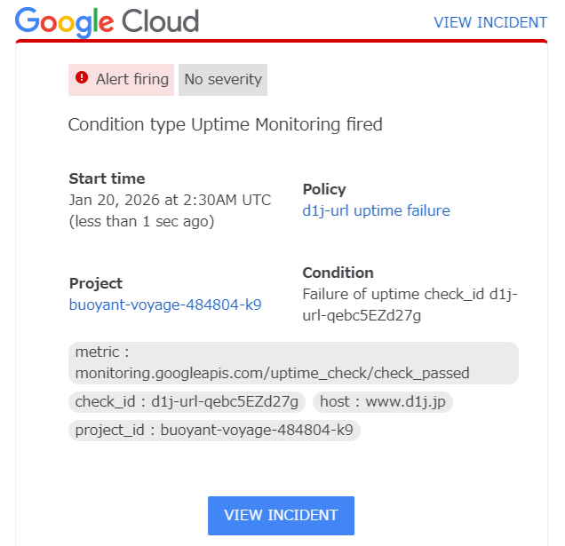以上で「GCP(Google Cloud)Cloud Monitoring URL外形監視設定方法」を完了いたします。