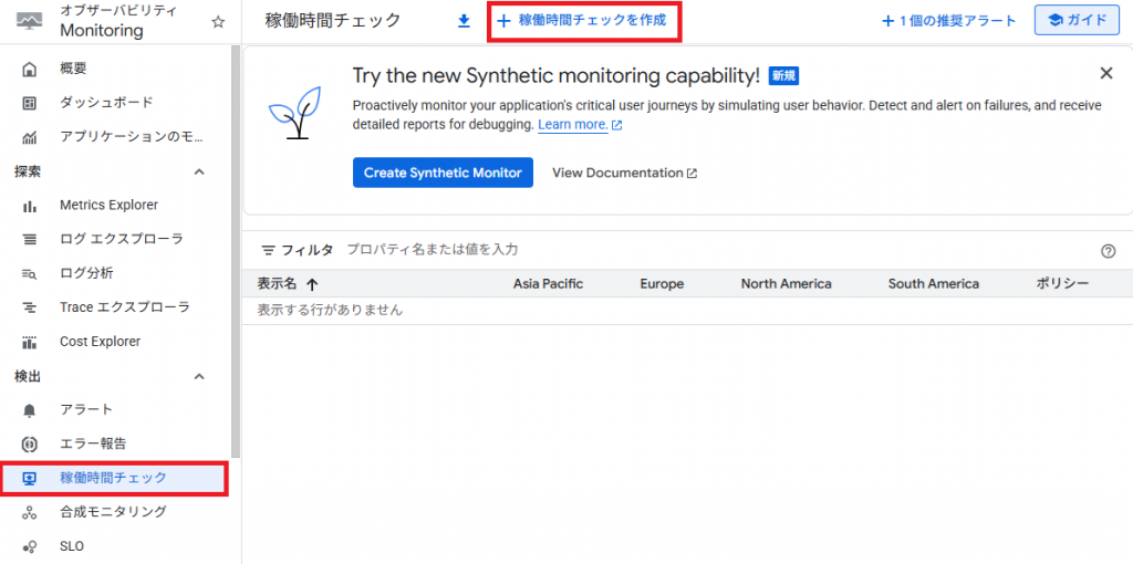 GCP(Google Cloud)Cloud Monitoring URL外形監視設定方法