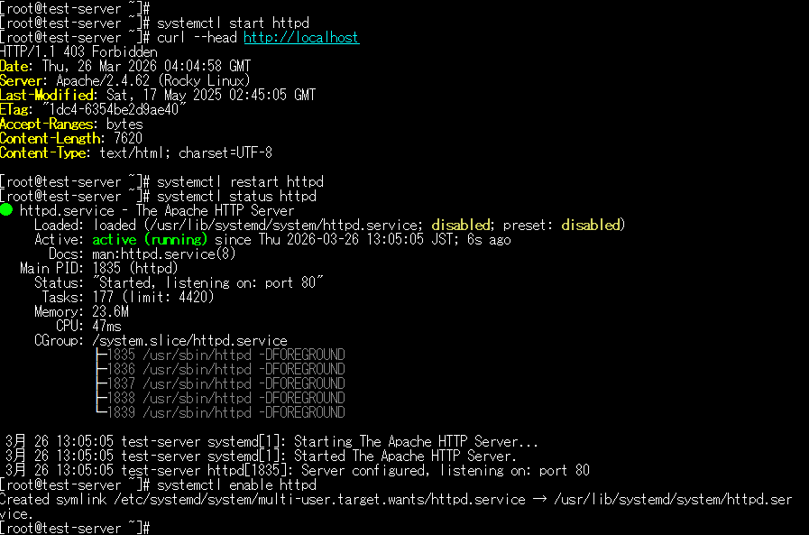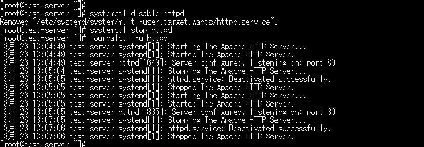 Apacheの起動、停止を実施してみます。