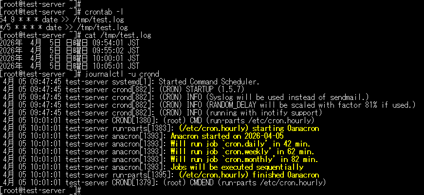 | # journalctl -u crond | journalからcron情報を参照してみましょう。 |