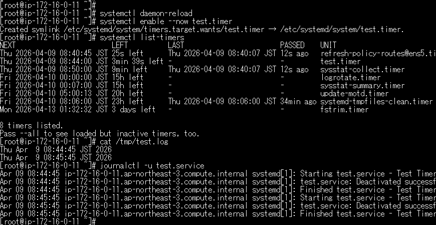 以上で「AWS EC2 systemd-timer 利用方法」を完了いたします。