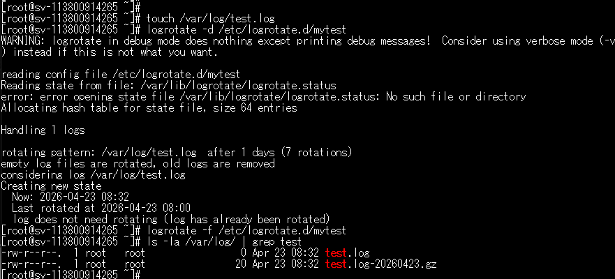cronやsystemd-timerの記事では /tmp/test.log を使用しておりましたが、実運用では /var/log 配下をご利用ください。